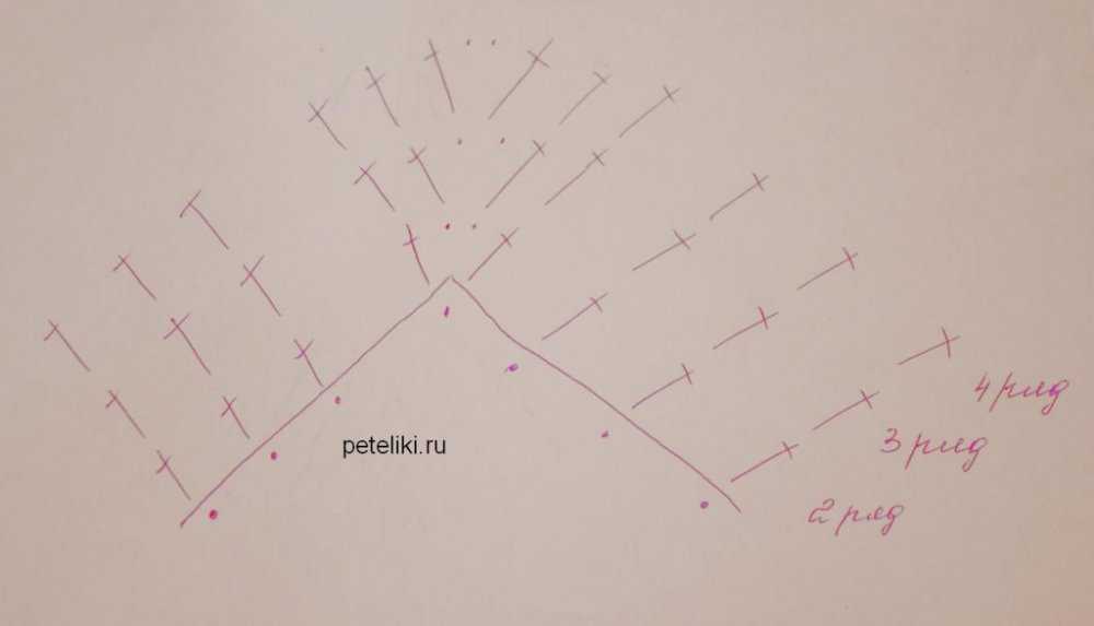 - Наберите цепочку из 10 возд. пет. и вяжите по данной схеме.