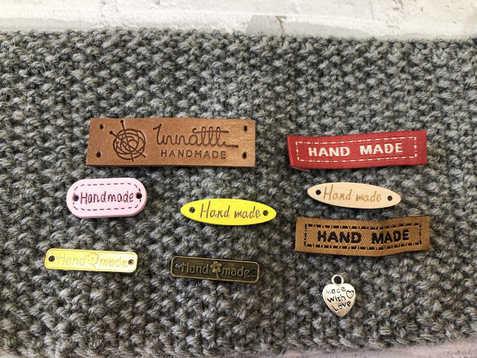Готовую джутовую корзину, связанную крючком, можно украсить и «именовать» биркой. Красиво смотрится из коричневой кожи.
