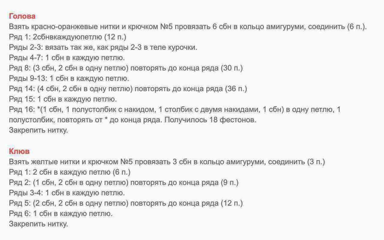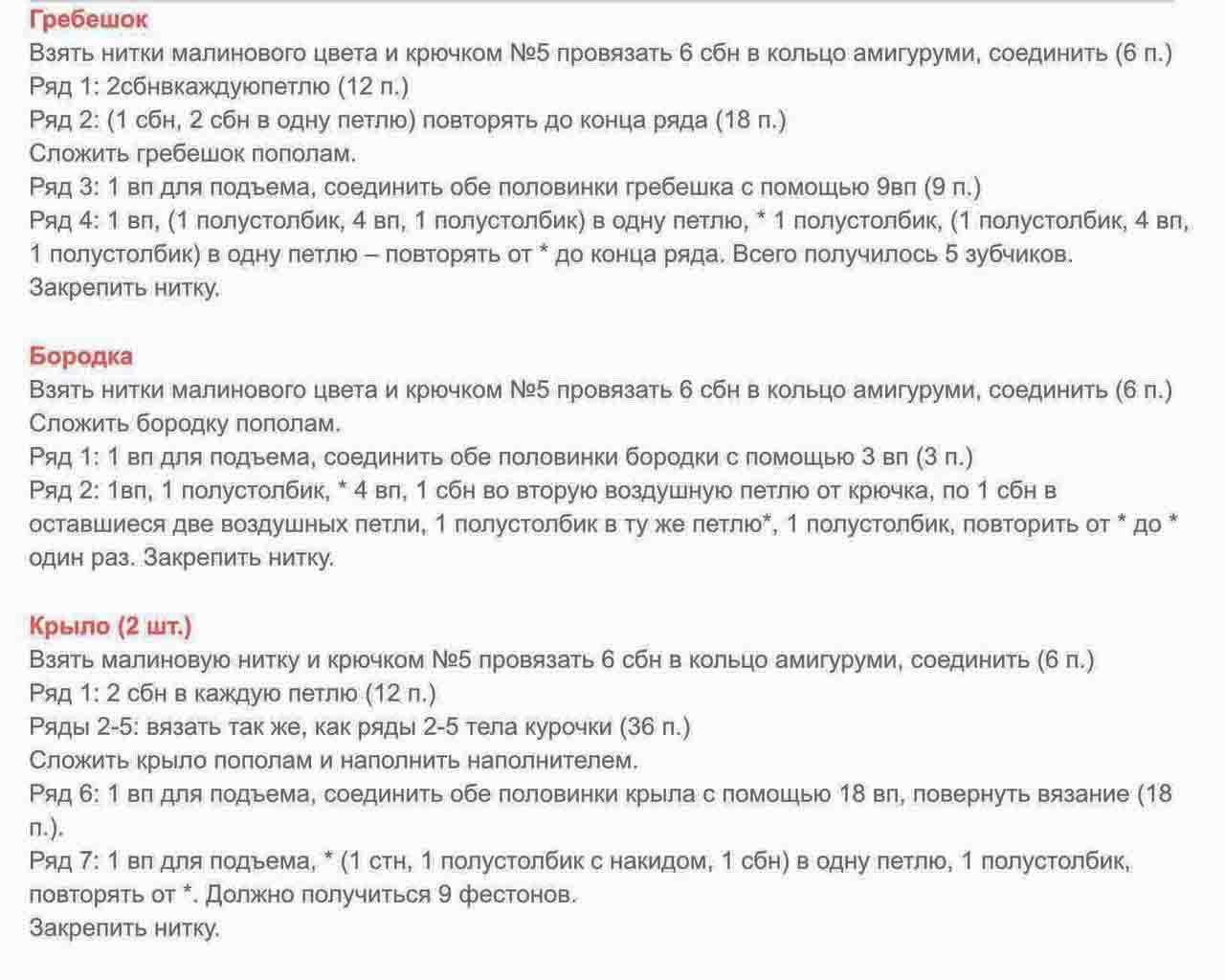 Следующим шагом будет вязание гребешка, бородки клювика курочки.