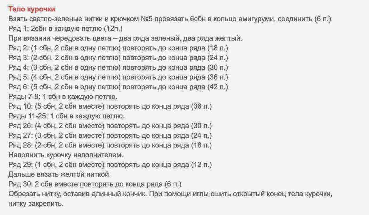Тело курочки готово. Его можно на время отложить. Крылья и хвостик вяжутся по одной схеме.