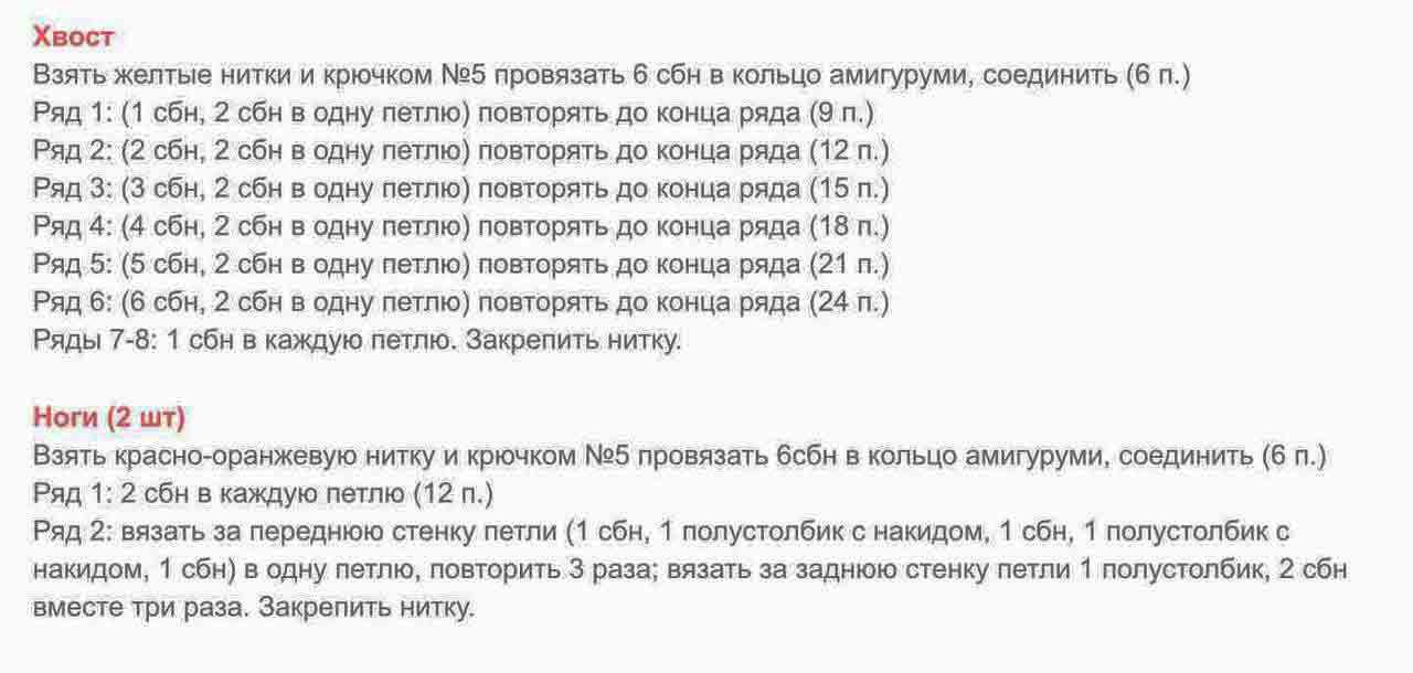 По такому же принципу связать лапки из коричневой или желтой нити. Но набирать все 3 раза по 14 петель.