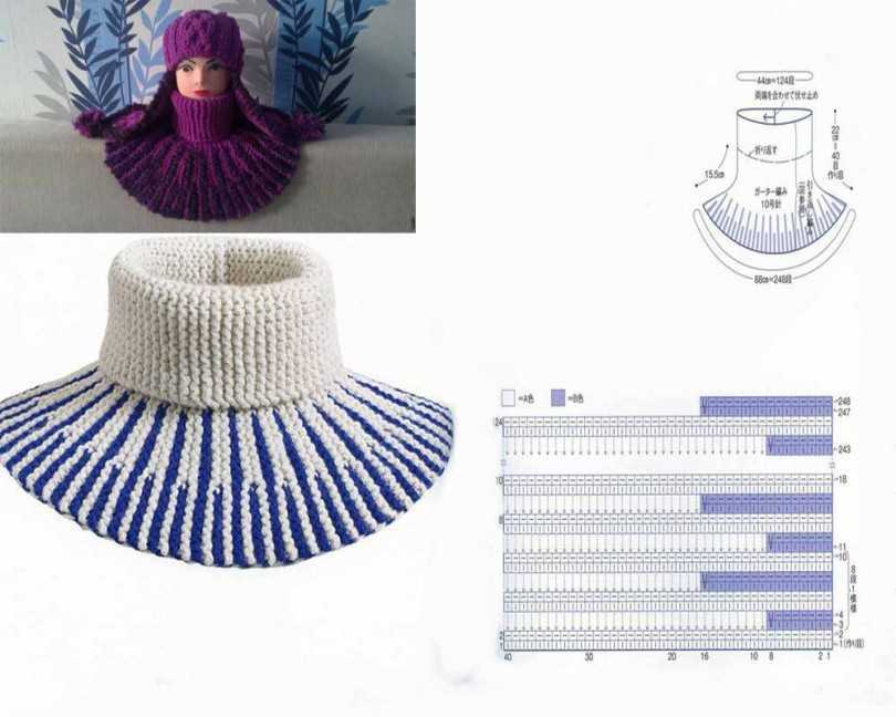 Вывязывается полотно, которое должно охватить весь объем шеи с крохотным запасом в один сантиметр. Дизайн может быть каким угодно, начиная от комбинации различных оттенков заканчивая ажурными рисунками. Здесь все зависит лишь от ограниченности фантазии автора.