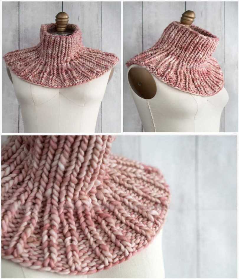 Теплый воротник может быть связан по кругу, либо с застежками на пуговицы или молнию. И в том и в другом случае манишка состоит из двух частей: