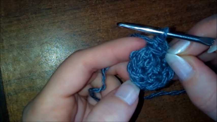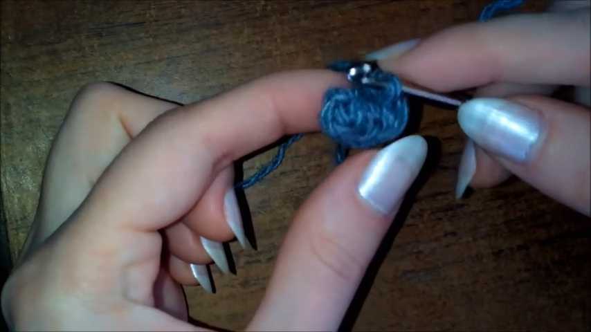 Накрутить на палец нить в несколько оборотов. В получившееся колечко связать 6 столбиков без накида. Стянуть серединку.