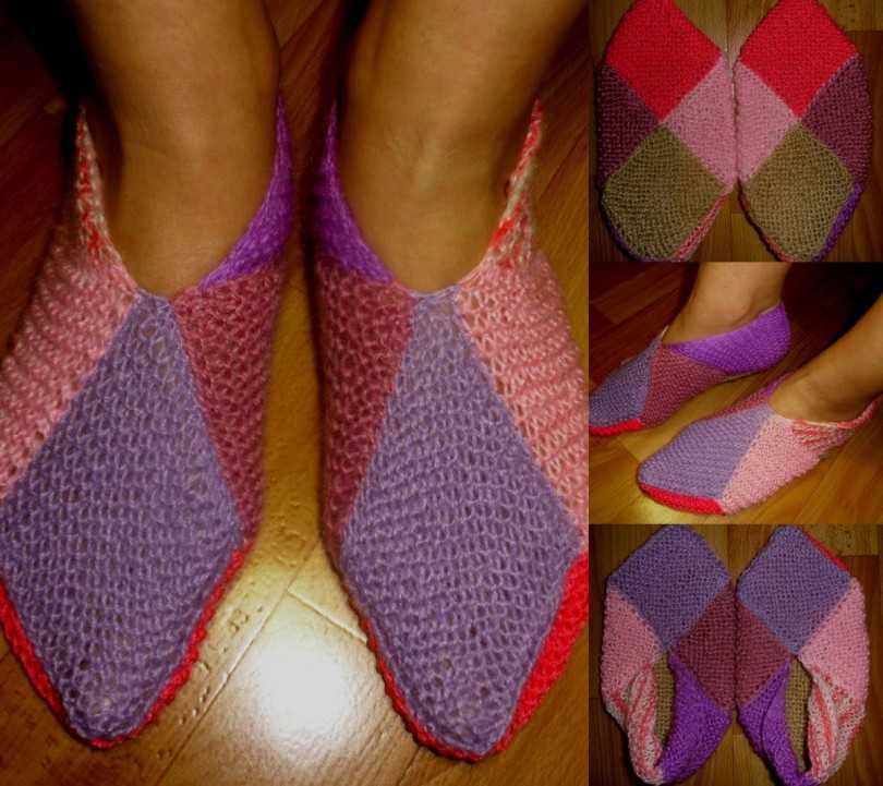 Но четырехугольник вполне подойдет и для простых комнатных тапочек. Чтобы сплети свою первую пару, придерживайтесь планов и описания каждого шага вязанья на фотографии и у вас все удастся.
