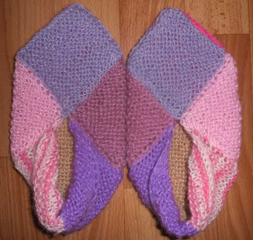 Когда длина вязаного мотива будет равна длине стопы, можно переходить к вывязыванию пятки.
