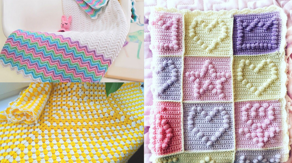 Примеры красивых вязаных пледов для детей, выполненных крючком