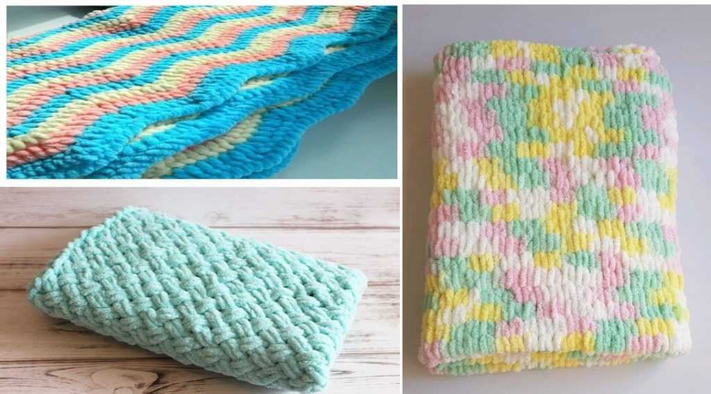 Покрывало, выполненное толстыми нитками, будет готово в течение недели-двух, когда плед из пуффи можно закончить за несколько часов работы.