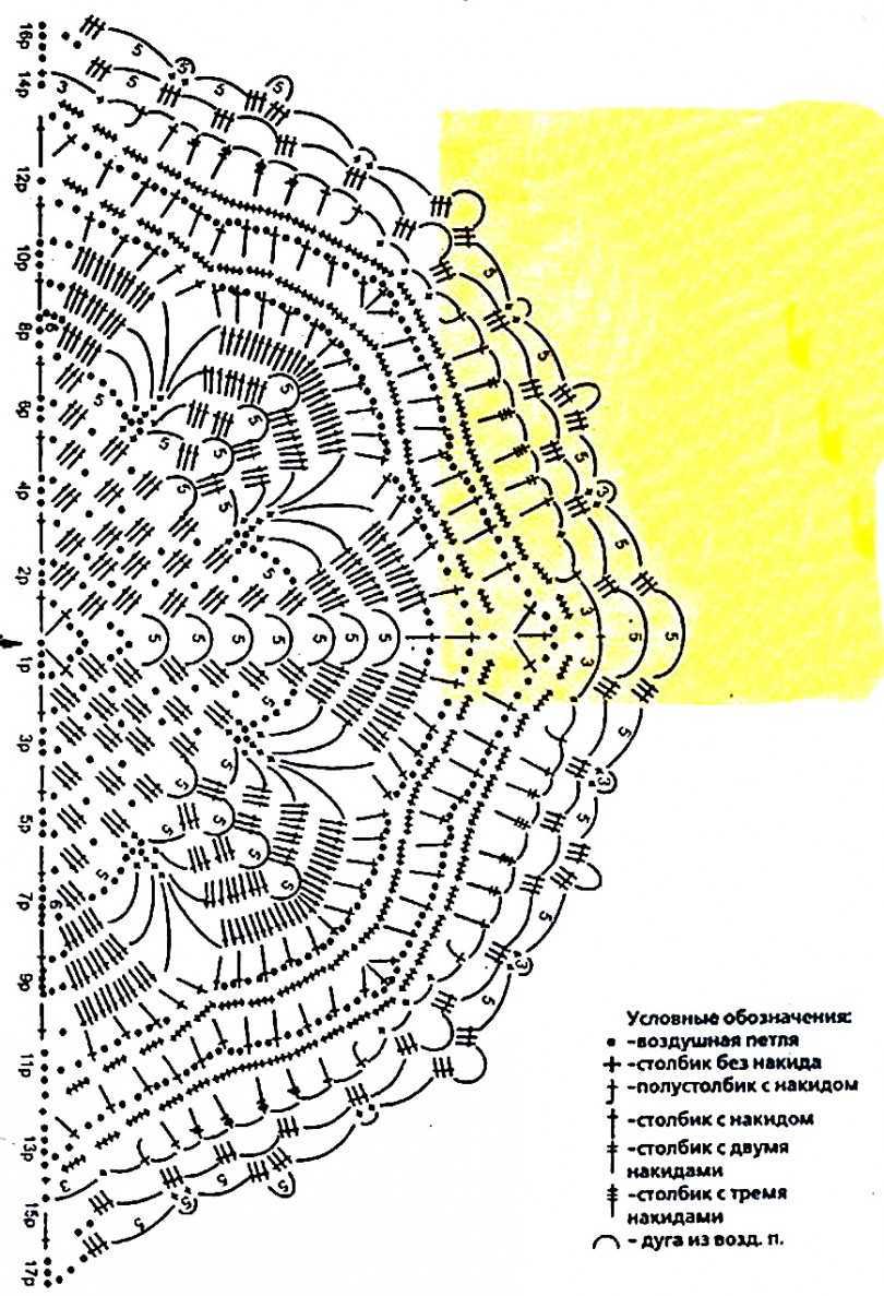 Далее на помощь придет схема. Чередуйте ряд столбиков с накидом и ряд соединит.столбиков 2 раза. Ряд филейной сетки 1ст.снакидом, 1 возд.петля, ряд соединит.столбиков.