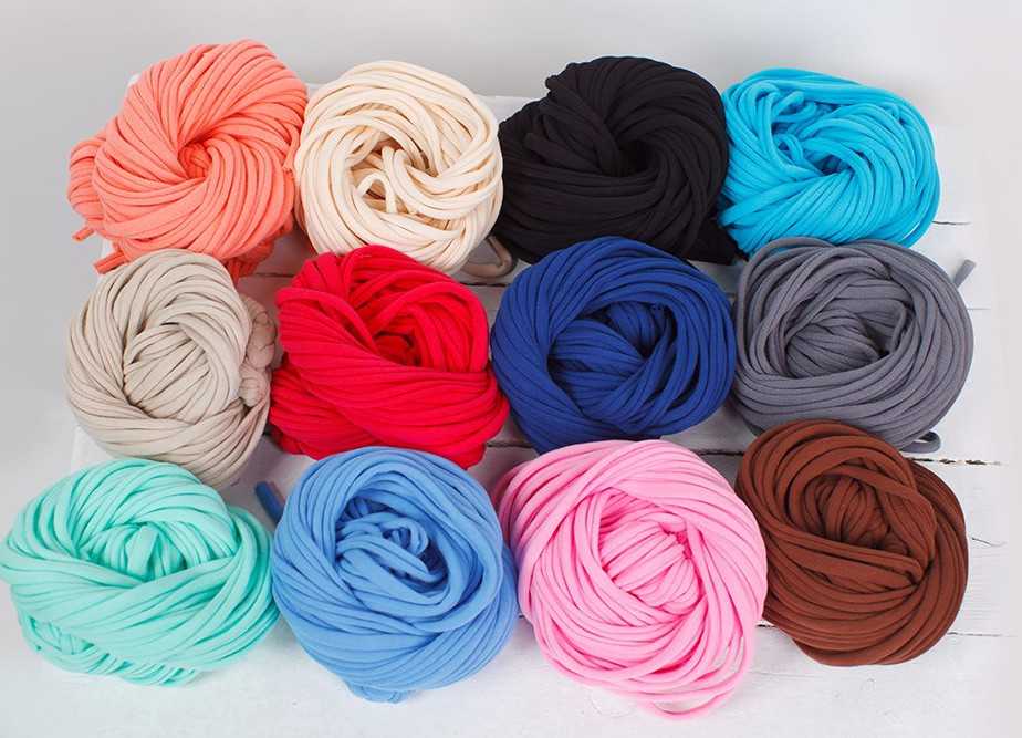 Трикотажная пряжа представляет собой полоски, нарезанные из трикотажной ткани. Толщина полосок может варьироваться от 1 до 2,5 сантиметров. Но можно изготовить такую пряжу самостоятельно, поэтому и ширину полоски можно выбирать самостоятельно.