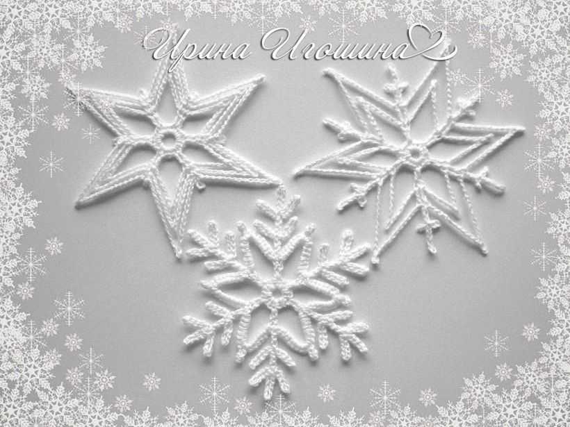 После того, как первая снежинка связана, наверняка Вам в память уже врезались такие понятия, как воздушная петля, арочка из стольких-то воздушных петель, пико и т.д. И если вы поняли, что ещё чуть-чуть – и начнёте разбираться даже в схемах, то можно усложнять задачу.