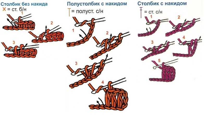 - Столбик без накида, полустолбик с накидом, столбик с накидом
