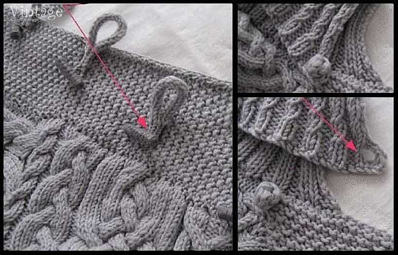 Как видно на фото, вязание может начинаться снизу и отдельными деталями, а может брать своё начало у горловины и вяжется без швов. Каждая рукодельница вяжет шазюбль тем способом, который для неё ближе и более лёгкий в исполнении.