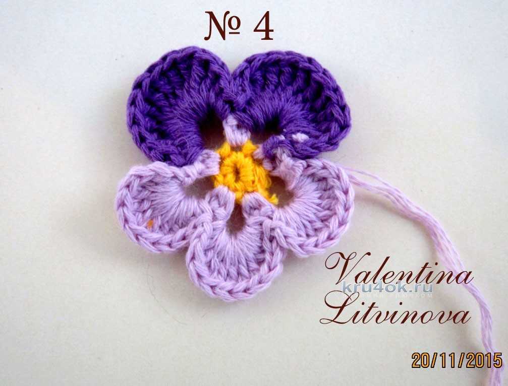 Аккуратно собираем цветок. Вязаные анютины глазки имеет пять лепестков. Интересное расположение лепестков и их расцветка делает из них любимый декор.