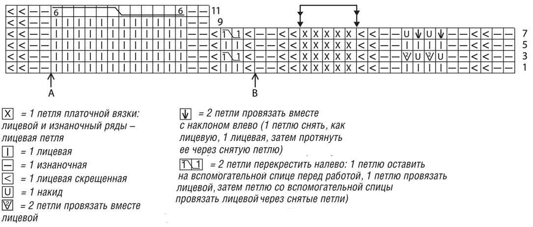 По второму методу, в 1-ом рядке необходимо набрать и закрыть петли, а рисунок вывязывается отдельно. При этом учитывайте, что количество готовых рядков, петель, набираемых на двух спицах, может разниться со схемой. Единственное, что требуется — это учет того, что готовая вещь получится в размерах меньше.