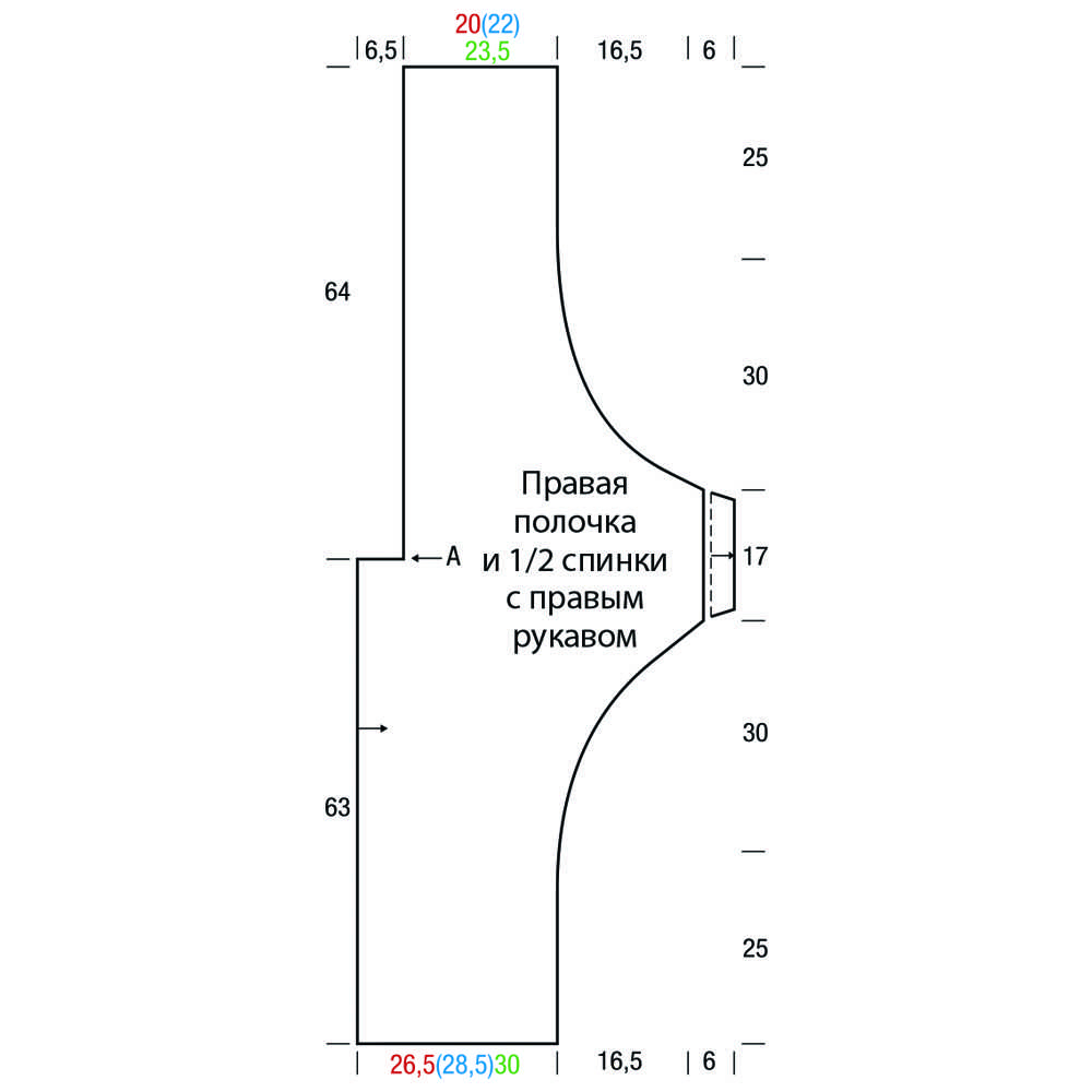 - Правая часть кардигана — вяжется в зеркальной отображении левой части