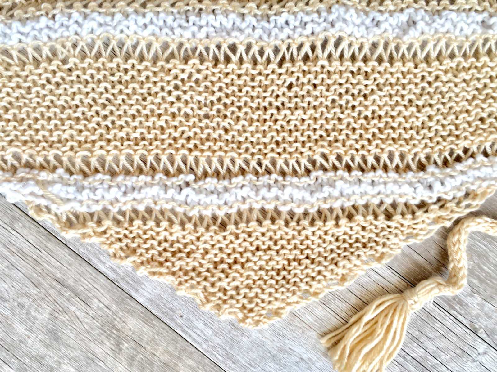 Работа завершается, когда косынка достигает нужных размеров. Если обвязать получившееся изделие крючком по кромке или обшить косынку лентой, получится оригинальное изделие.