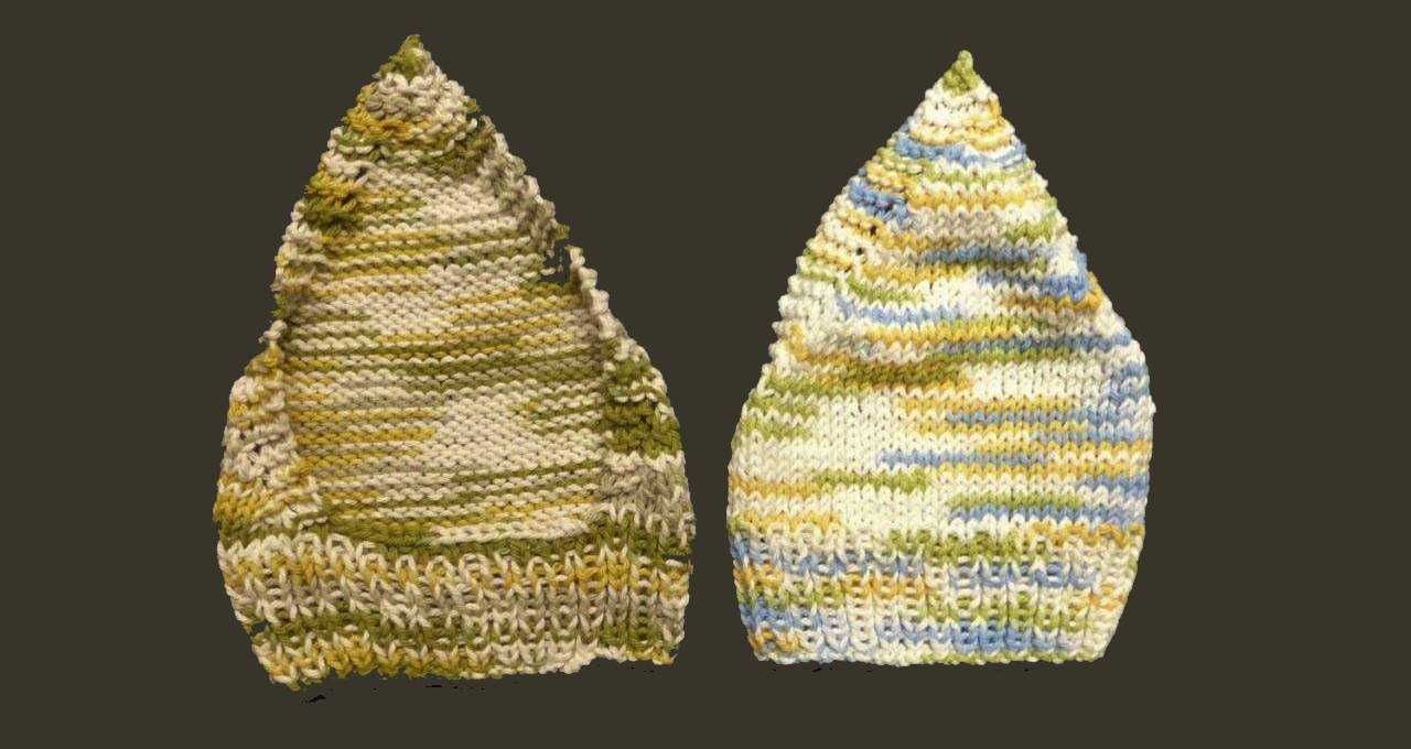 Чтобы упростить расчет убавления петель и не допустить ошибки, отметьте середину булавкой. Уменьшение петель делаем в каждом ряду таким образом: провязываем две последних петли как одну. Оставшиеся в самом конце 3 петли провязываем в одну и прячем нитку.