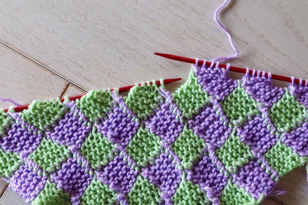 В виде прямоугольника вяжут полотно по диагонали для шапок, шарфов, юбок, полочек. Прямоугольник вязать несколько сложнее, чем квадрат, но принцип остаётся тот же. Отличие состоит в следующем: когда вяжут квадрат, то петли симметрично прибавляют и убавляют с обеих сторон, а для прямоугольника поступают так: