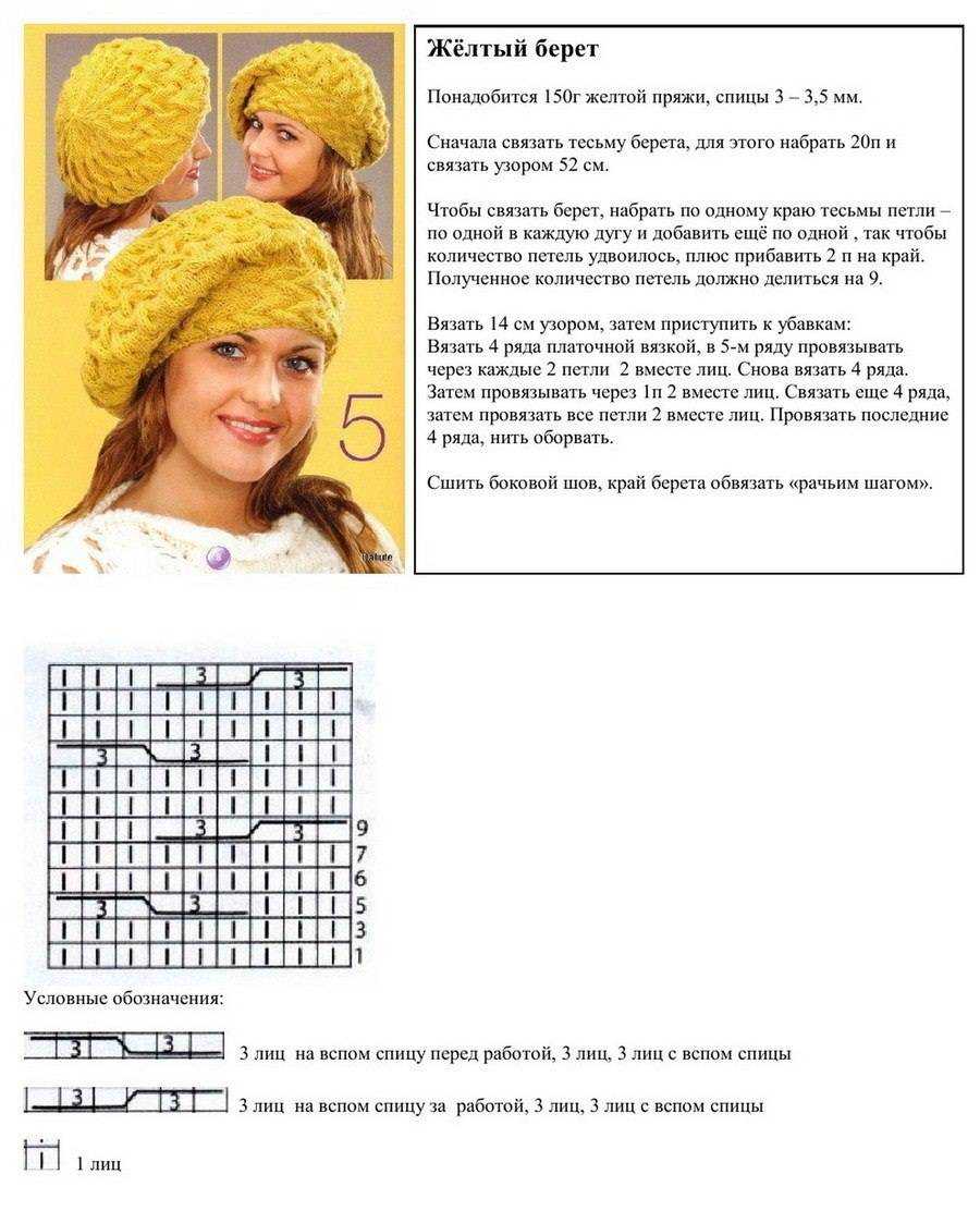 Как связать берет спицами – схемы