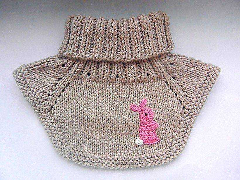 Эта манишка очень проста в исполнении, а вязка английской резинкой позволит ей быть максимально приятной на ощупь.