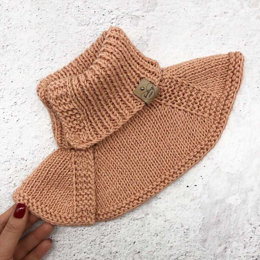 - Вначале надо связать воротник. Можете сделать его любой длины, с загибом или без него.