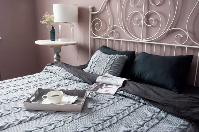 - плюшевые пледы, связанные своими руками в качестве покрывал на кровати;
