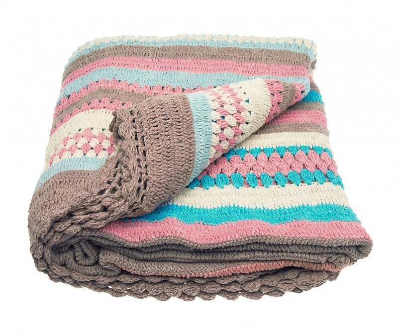 - Вязанное одеяло не только защитить ребенка от непогоды, но украсит коляску или кроватку. К тому же, ни у кого не будет такого пледа!