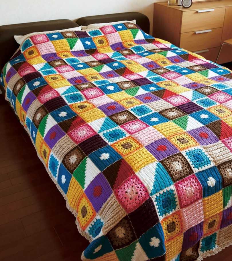 Существует несколько техник и способов изготовления трикотажного покрывала, которое можно выполнить по-разному: