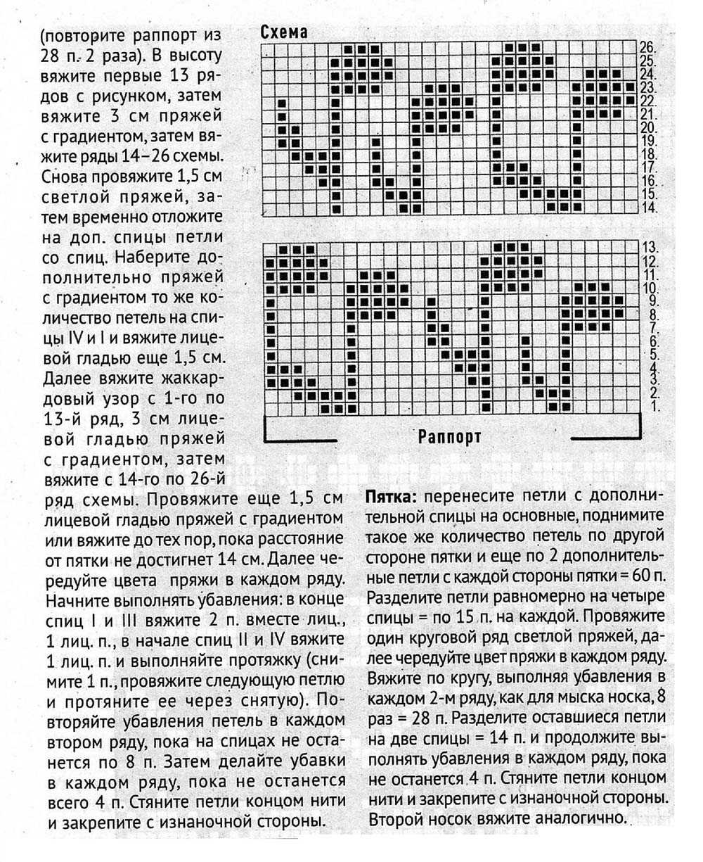 Чаще всего, располагают жаккард или орнамент в виде декоративной полосы. Если вам захочется сделать всю модель таким рисунком, то можно, наоборот, декорировать орнамент несколькими полосами лицевой глади. Схемы популярных орнаментов, которые мастерицы используют для вязания носков: