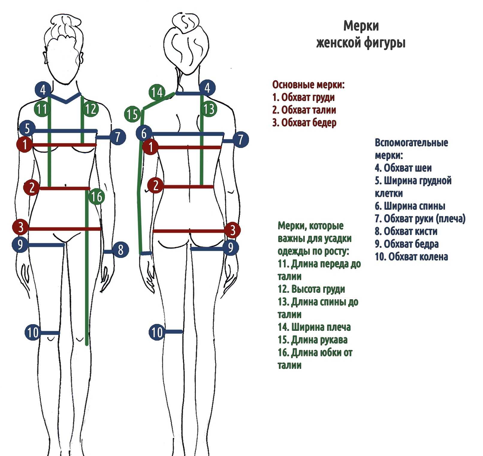 Для построения потребуется снять следующие мерки: