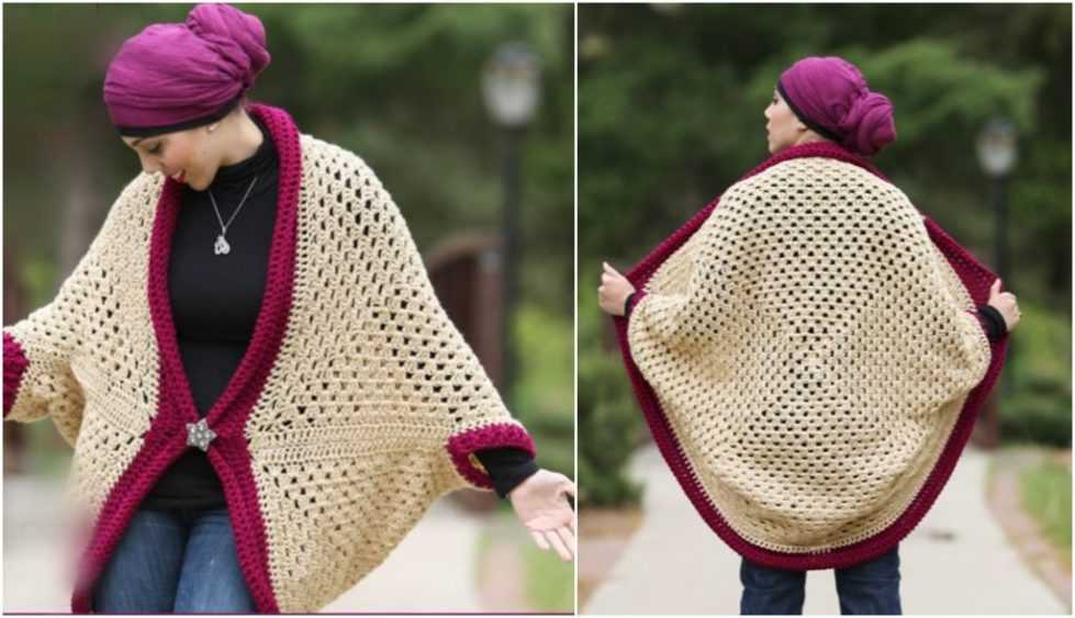 Чтобы связать этот вариант кардигана-кокона крючком или спицами, следует выполнить несколько иные манипуляции: