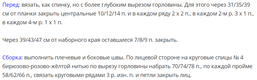 - сшить правое плечико, вытянуть из проймы 72 петли;