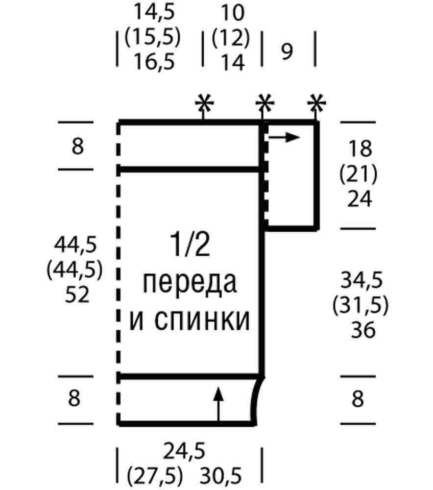 - рукава прямые без прибавок с вертикально проходящим по центральной вертикали жгутом;