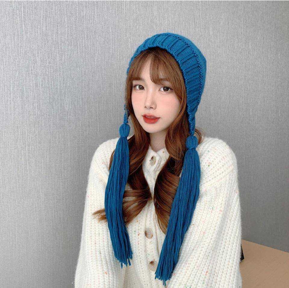 Такую прелестную шапочку вязать очень просто. Она выполнена из пряжи средней толщины. Начинаем с обычной резинки 2/2, продолжаем платочной вязкой и заканчиваем клиньями. По краям резинка украшена кистями. Схема шапки прилагается. Шапочка на размер от 54 до 56. Подходит для девочки-подростка.