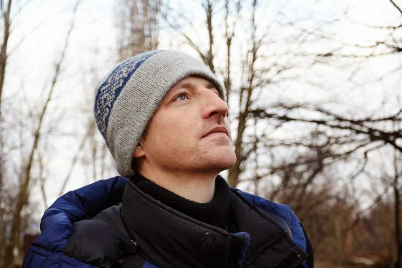 Моделей мужских шапок с отворотом, связанных спицами, не так уж много. Гардероб мужчины менее разнообразный, чем женский. Одно из направлений — с узором косы. Дизайнер Melissa Thomson.