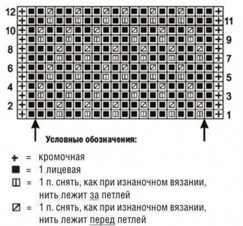 Схема узора с вытянутыми лицевыми петлями