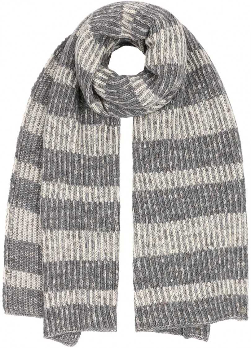 Легкий в исполнении узор, который вяжется на лицевой стороне лицевыми петлями. А за счет зигзагов и поперечных полос, вывязанных платочным узором шарф выглядит красиво и ненавязчиво, а также сохраняет форму.