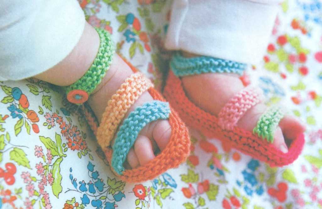 - Используя плотную вязку для изготовления подошвы, тоже можно продлить срок службы пинеток. Также это удобнее для детей, начинающих ходить.