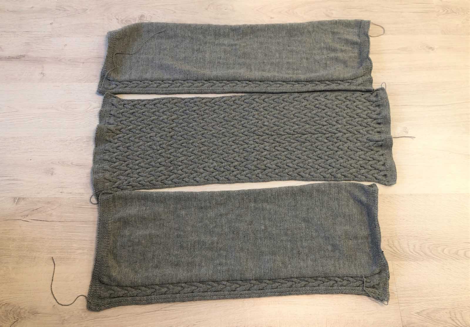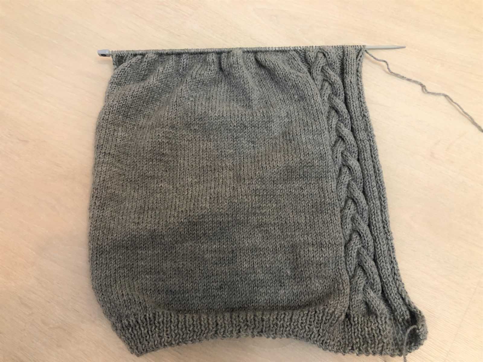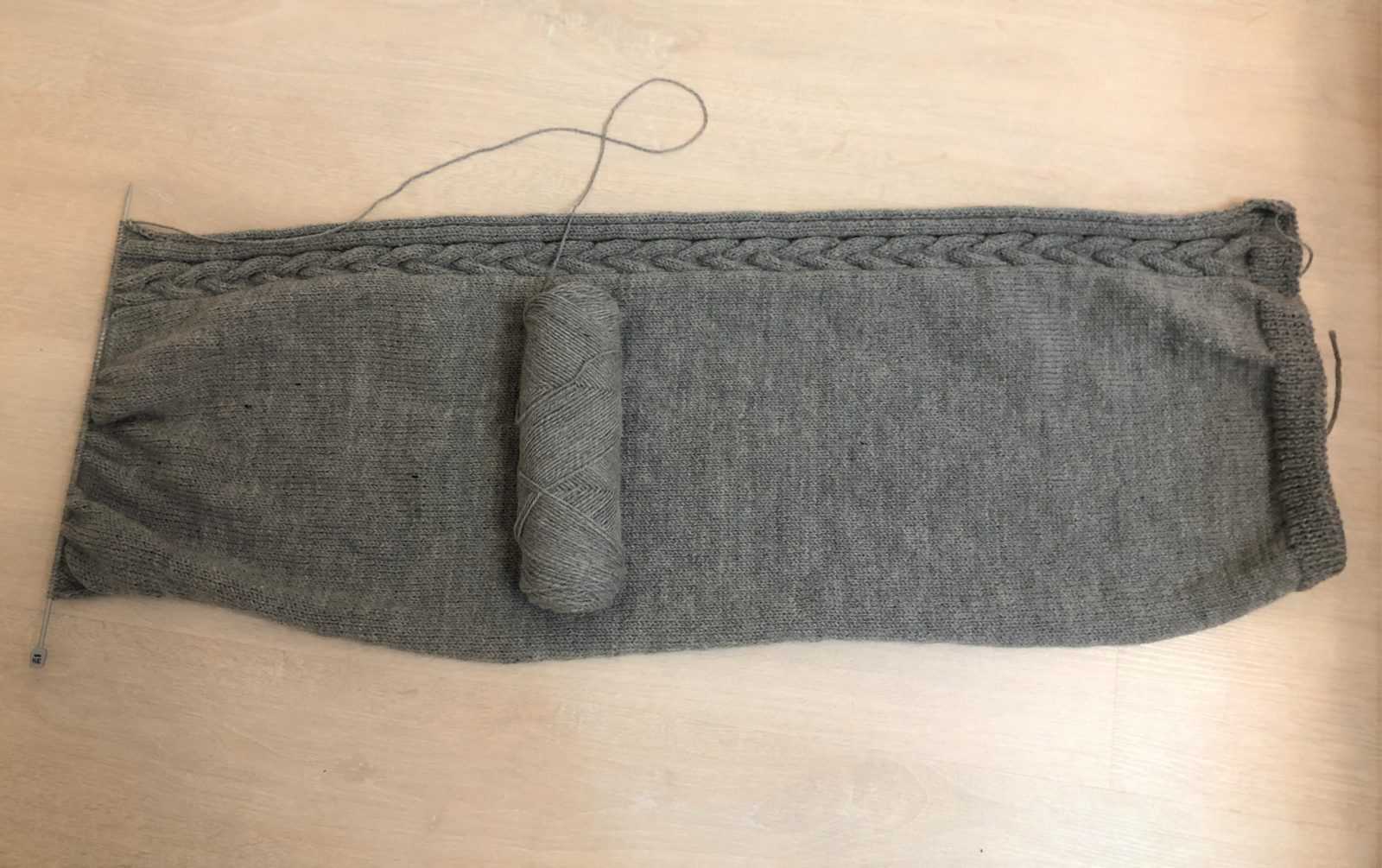 - когда вязаное полотно достигнет нужного размера, делим ряд на две половины