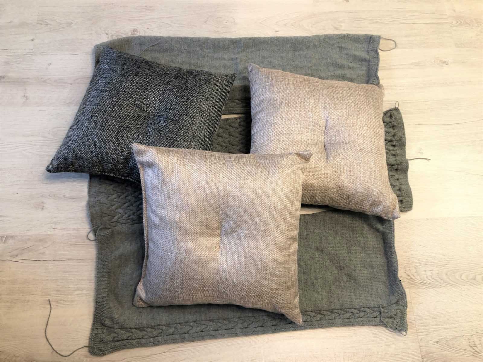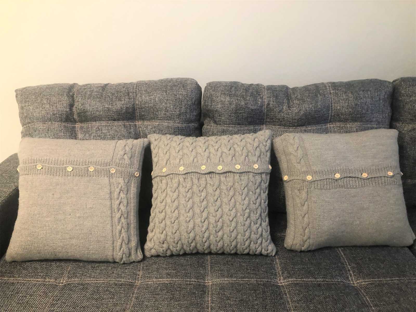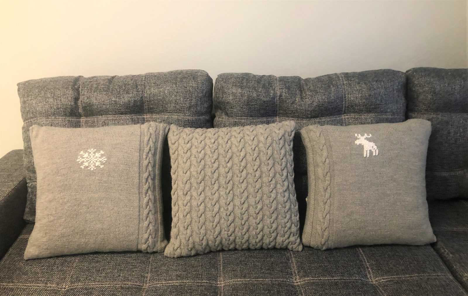 Подушки на диван, вязанные спицами, смогут подчеркнуть преимущества интерьера.