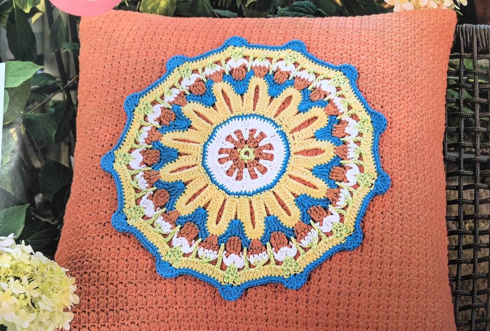 Цвета пряжи для этой подушки подобраны так, что она напоминает спелую тыкву.