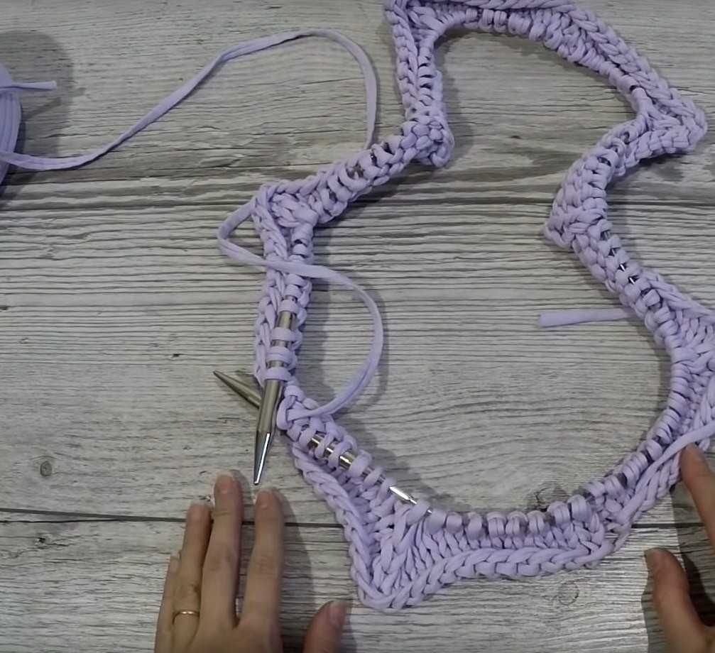 Могут вязаться как пряжей средней толщины (на спицах № 3 – 5), так и трикотажной (ленточной) пряжей на более толстых спицах.