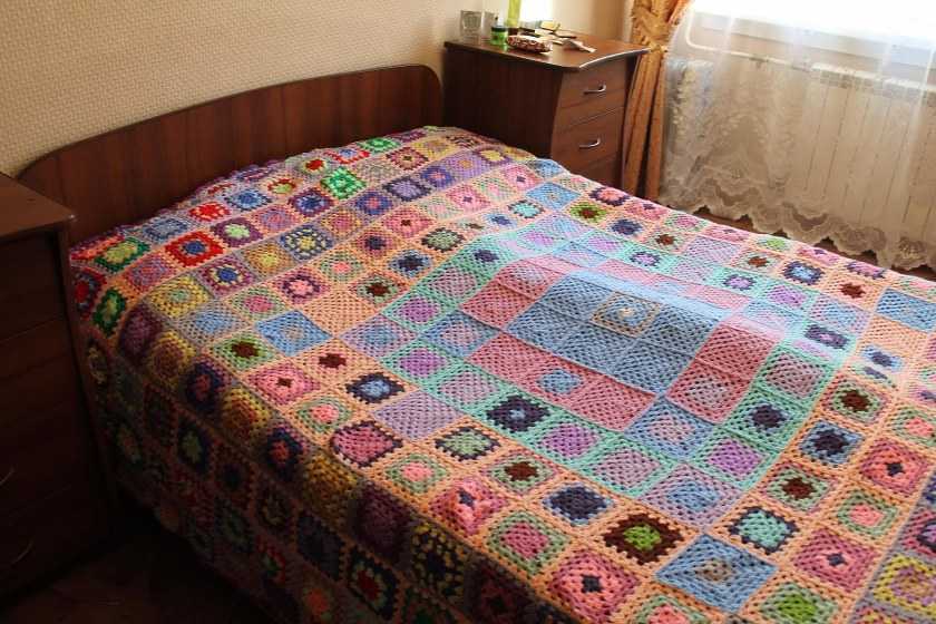 Не используйте для изготовления большого покрывала старую пряжу: истрепанная поверхность пряжи придаст изделию неряшливый вид.