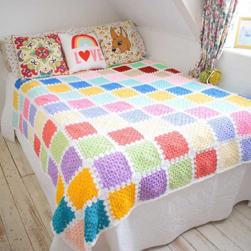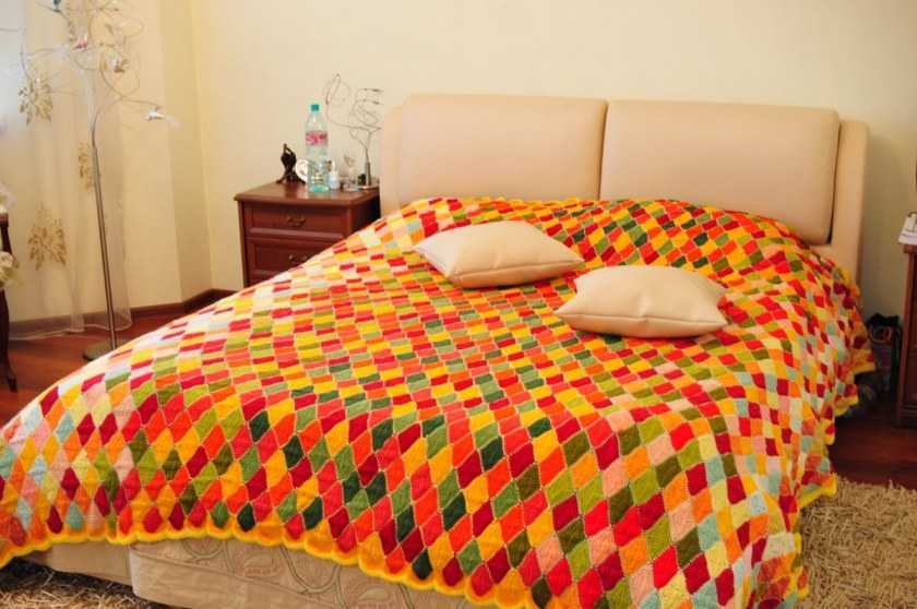 Для оформления детских больше подойдут покрывала с рисунками и орнаментами ярких «жизнерадостных» оттенков. Очень часто детские пледы изготавливаются из разноцветных фрагментов. Подобные вязаные покрывала наполняют комнату ребенка позитивом и служат источником энергии.
