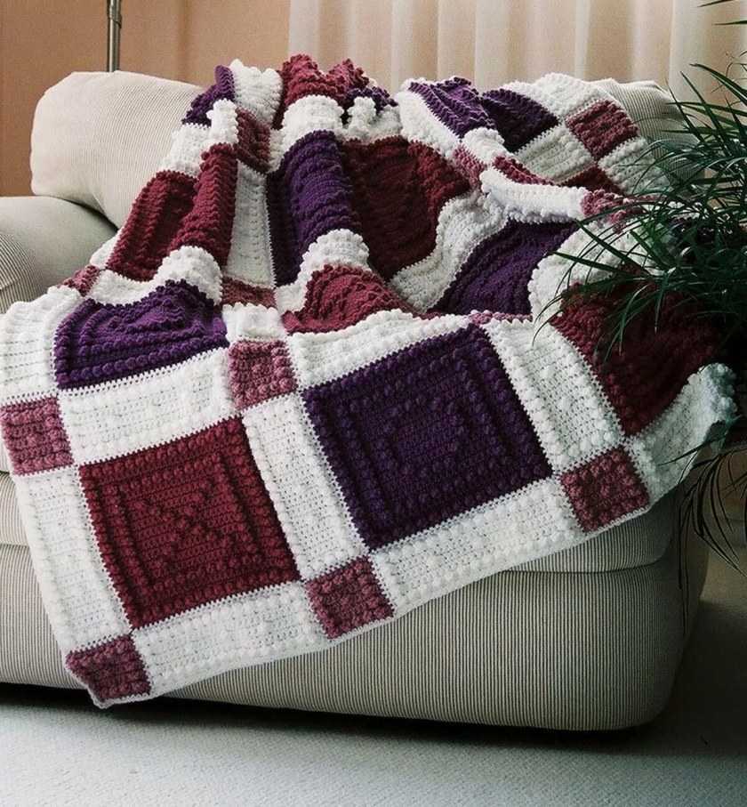 - Изнаночная сторона изделия тоже будет на виду, поэтому лучше всего для вязания пледа спицами выбирать двусторонние узоры.