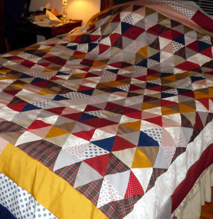 - Кстати, очень неплохая идея, оформить изнаночную сторону вязаного спицами пледа тканью. Тогда и рисунок можно выбирать совершенно любой.