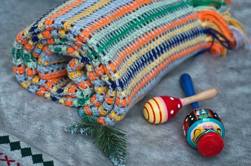 Детский плед вязаный спицами и крючком готовят из качественной и гипоаллергенной пряжи