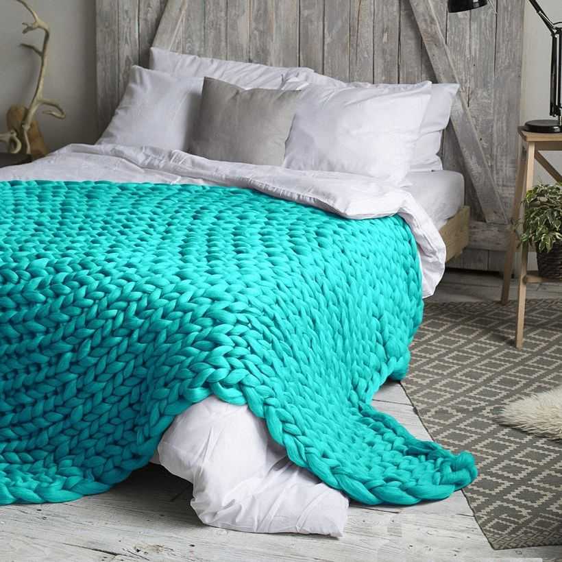 Пледы, выполненные крупной вязкой, рекомендуют чистить в специализированных химчистках.