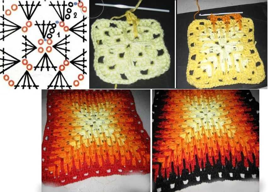 - каждый квадрат вполне возможно вязать по разным схемам, так получиться даже оригинальней!